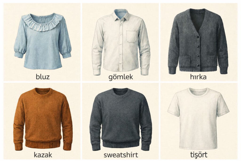 Learn the most common clothing vocabulary in Turkish, grouped by categories. Each word comes with pictures and pronunciation to help you remember faster.